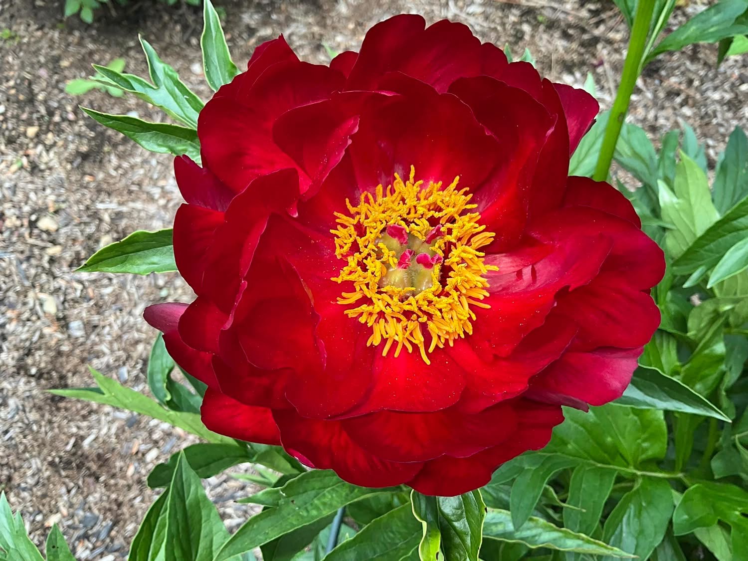 Veľmi výrazné rubínovo červené a jednoduché kvety krásneho tvaru. Rastliny bujne rastú a vytvoria pekný kompaktný ker, ktorý dosiahne maximálnu výšku 70-75 cm. Bonusom je, že listy majú úžasné jesenné farby. Bezpochyby jeden z najlepších pravých červených ITOH hybridov, ktoré sú dnes k dispozícii.